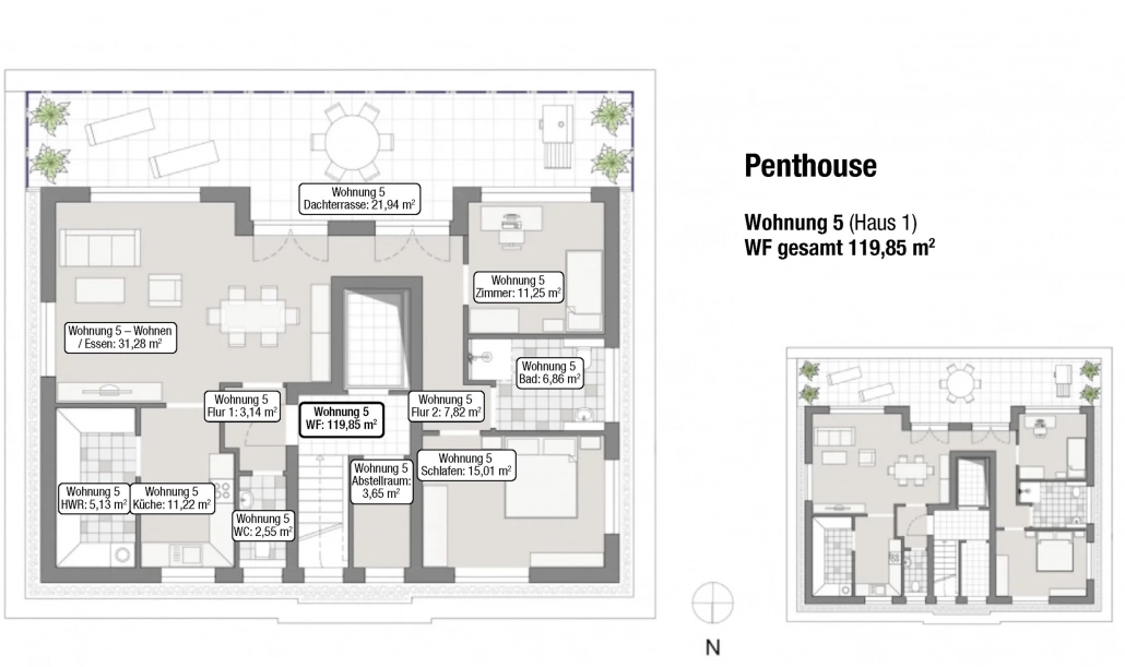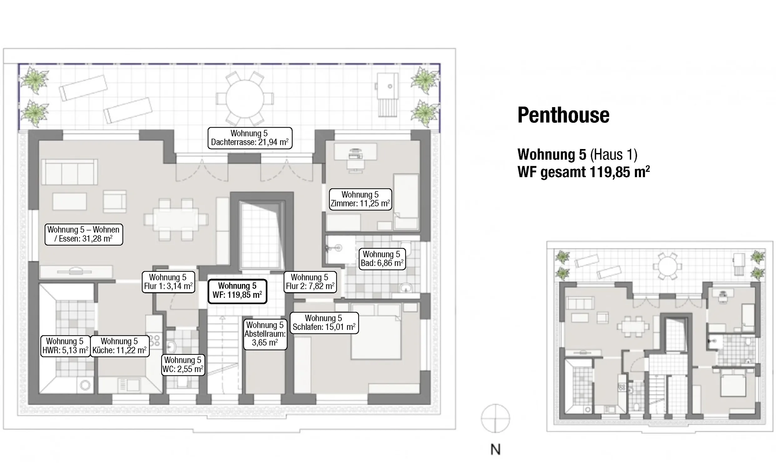 | Dachterrasse | 21,94 m² (43,88 m²) |